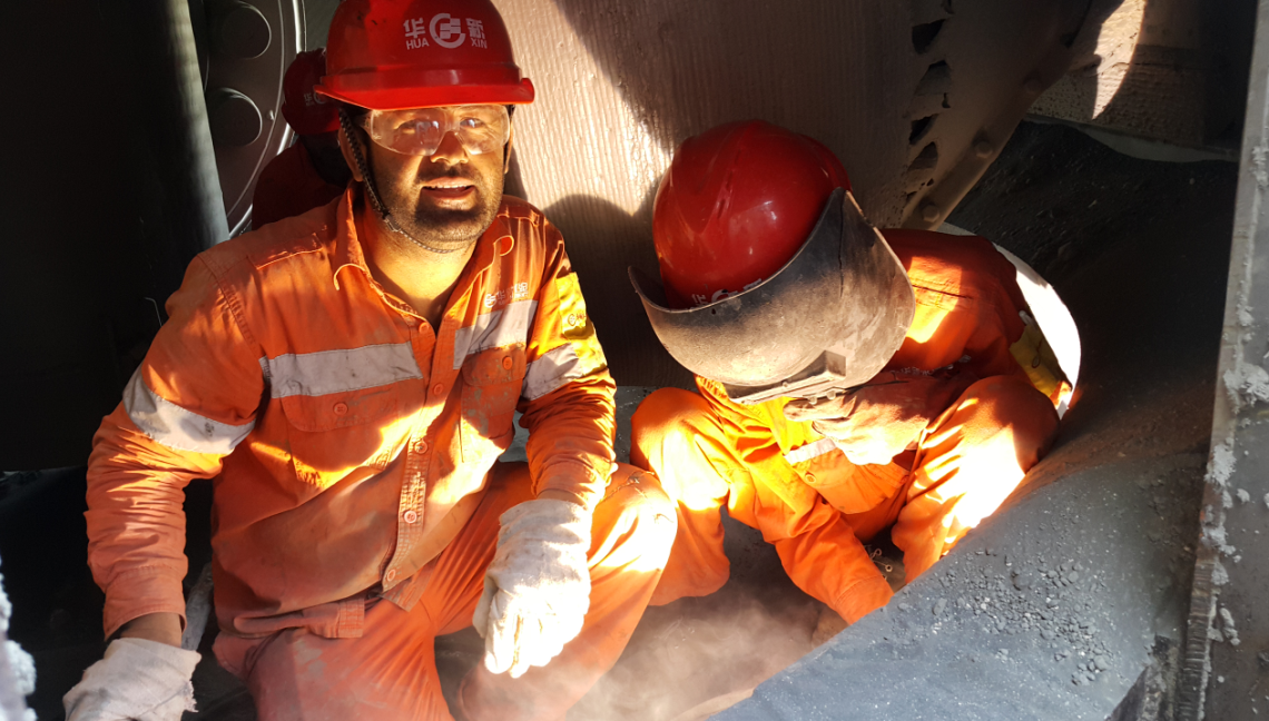 員工檢修水泥磨,累并快樂(lè )著(zhù)